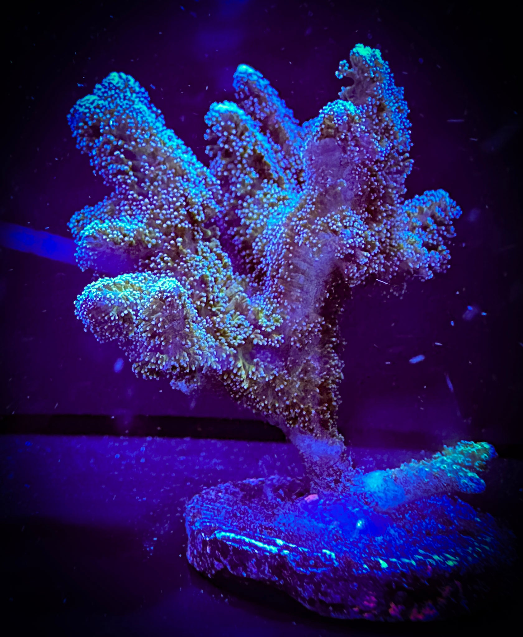 A truly unique coral-- this is a hybridization between the Bird of Paradise and Kryptonite that spawned in Lazy's Coral House tanks. Care is similar to other birdsnest corals.