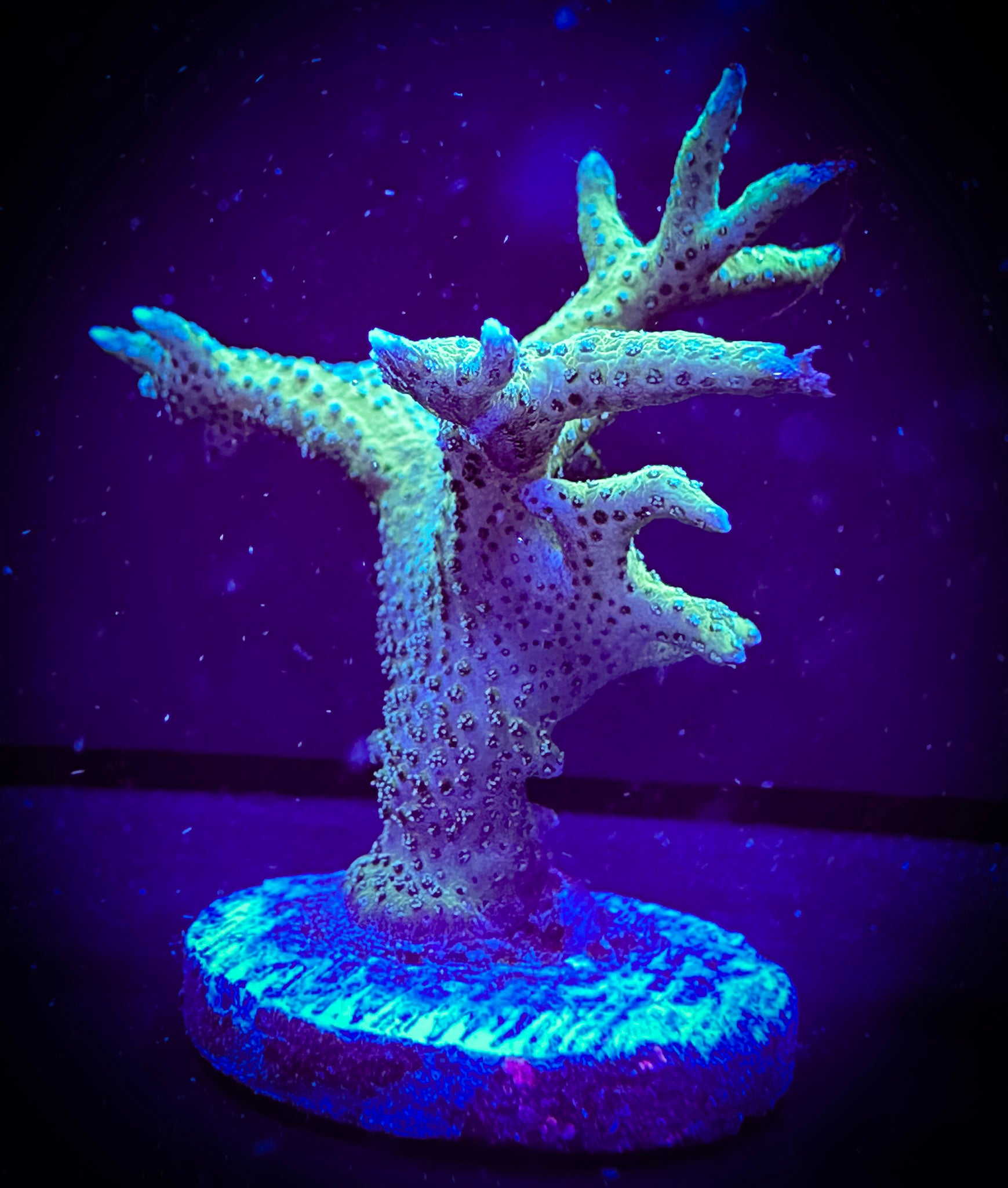 Pink and Green Birdsnest coral is a visually captivating species with vibrant colors. It is relatively easy to care for and thrives in moderate to high light conditions. This coral adds a vibrant touch to aquariums and grows rapidly, making it a popular choice for aquarists seeking both beauty and ease of care. It's a fast grower too! Frags are usually 1 1/2".